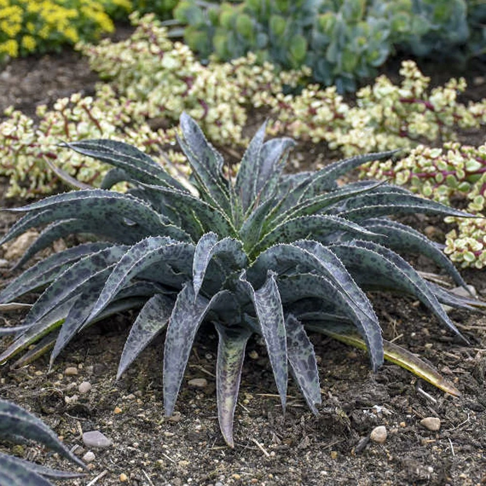 Inkblot Mangave Plants produce thick, wide, dark green leaves that sport red spots that deepen with exposure to the sun. Exceptionally easy to grow and easy to care for, it can make even a first-time gardener feel like a pro! Mangave combines the best features of decorative grasses and succulents into one very interesting plant. Grows in beds or containers. We guarantee our plants to arrive alive and thriving.