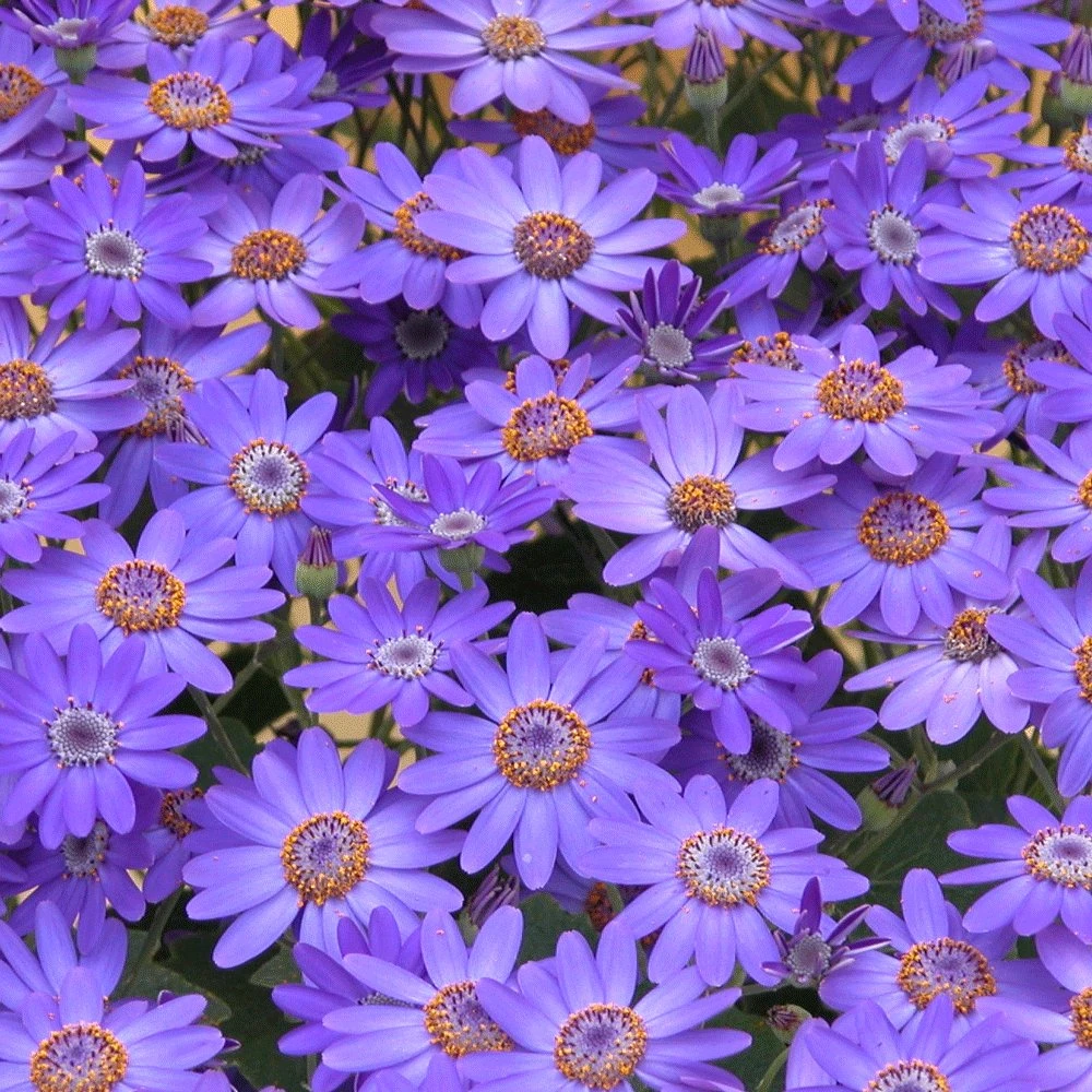 Senetti® Baby Blue Pericallis Plant will knock your socks off! The blossoms are really quite striking, having a yellow and brown eye, a spreading brilliant white ring and dainty tips that are tipped in soft violet-blue! The baby flowers are an eye-catching 1 1/2 inch massed on an upright, bushy plant.