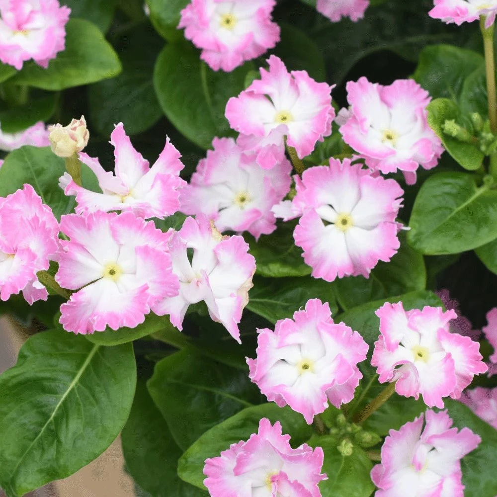 Soiree® Flamenco Cheeky Pink Catharanthus Plants are low growing, sun loving flowers that take the heat of southern gardens in stride. You’ll get loads of flowers are season long with the Soiree series! These annual Vinca are drought tolerant, low-maintenance plants that offer continuous blooms from early summer through frost. This one is perfect planted en masse in borders and beds, but will also shine in containers and hanging baskets