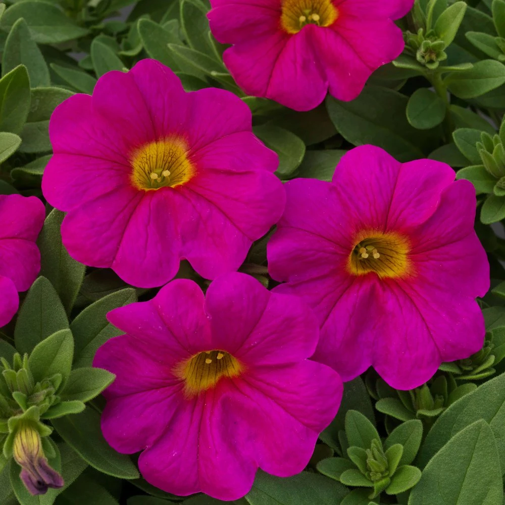 SuperCal® Neon Rose Petchoa Plant produces tons of hot neon pink flowers with equally bright and vivid yellow throats. The receptacle, the part of the flower that attaches to the stalk, is also brilliantly yellow, making for quite the flamboyant display! It is rumored that butterflies and hummingbirds can’t resist this heat lover!